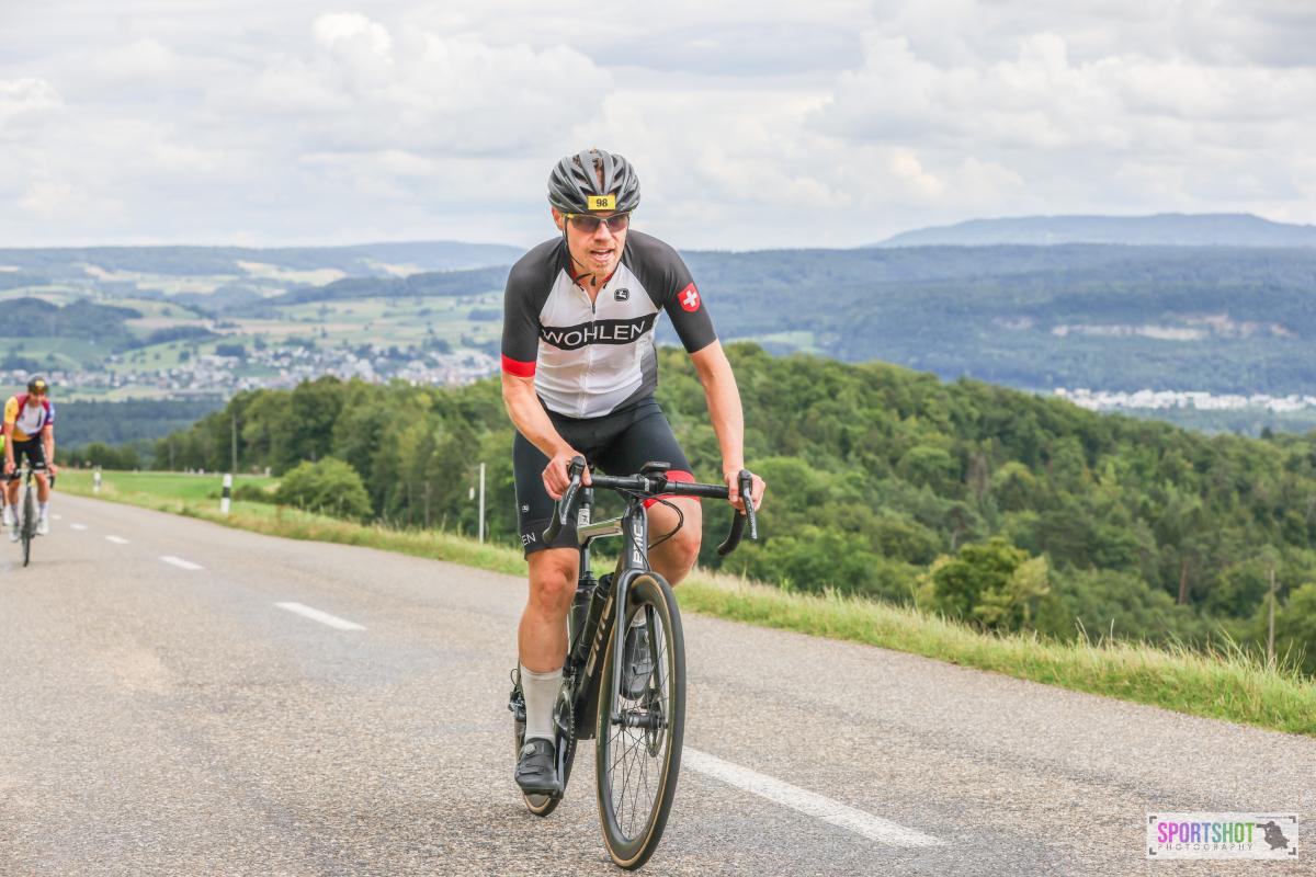 Nach einer Verpflegungspause auf dem Benkerjoch folgten weitere 45 Kilometer neutralisierte Hügellandschaft, bevor der Rotberg auf uns wartete. Dort angekommen, versuchte ich nochmals, alles aus mir herauszuholen. Es war zwar ein zäher Kampf, aber die gleiche Leistung wie zuvor konnte ich nicht mehr abrufen. Von unserer Gruppe kam ich ca. als 10ter an. Von hier ging es nur noch über den Zurzacherberg zurück nach Bad Zurzach, wo die Pasta Party und ein Finisher Bier auf uns warteten.